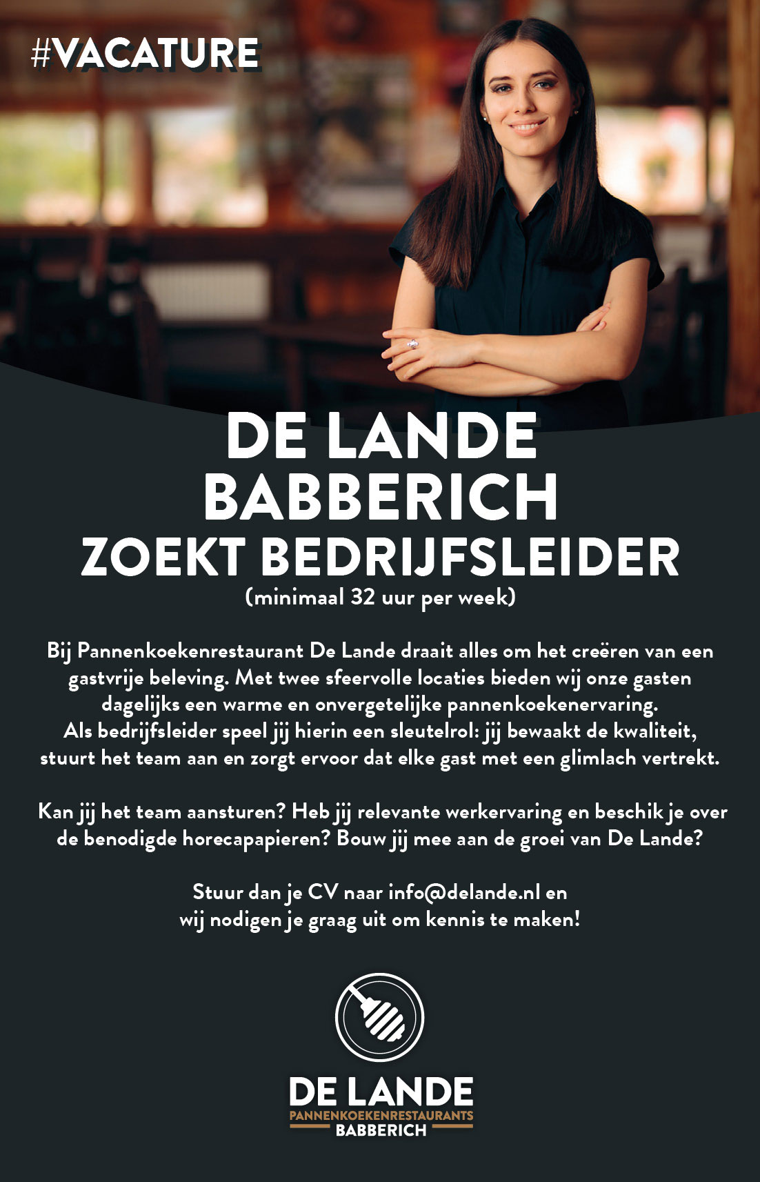 Kan jij het team aansturen? Heb jij relevante werkervaring en beschik je over de benodigde horecapapieren? Bouw jij mee aan de groei van De Lande?